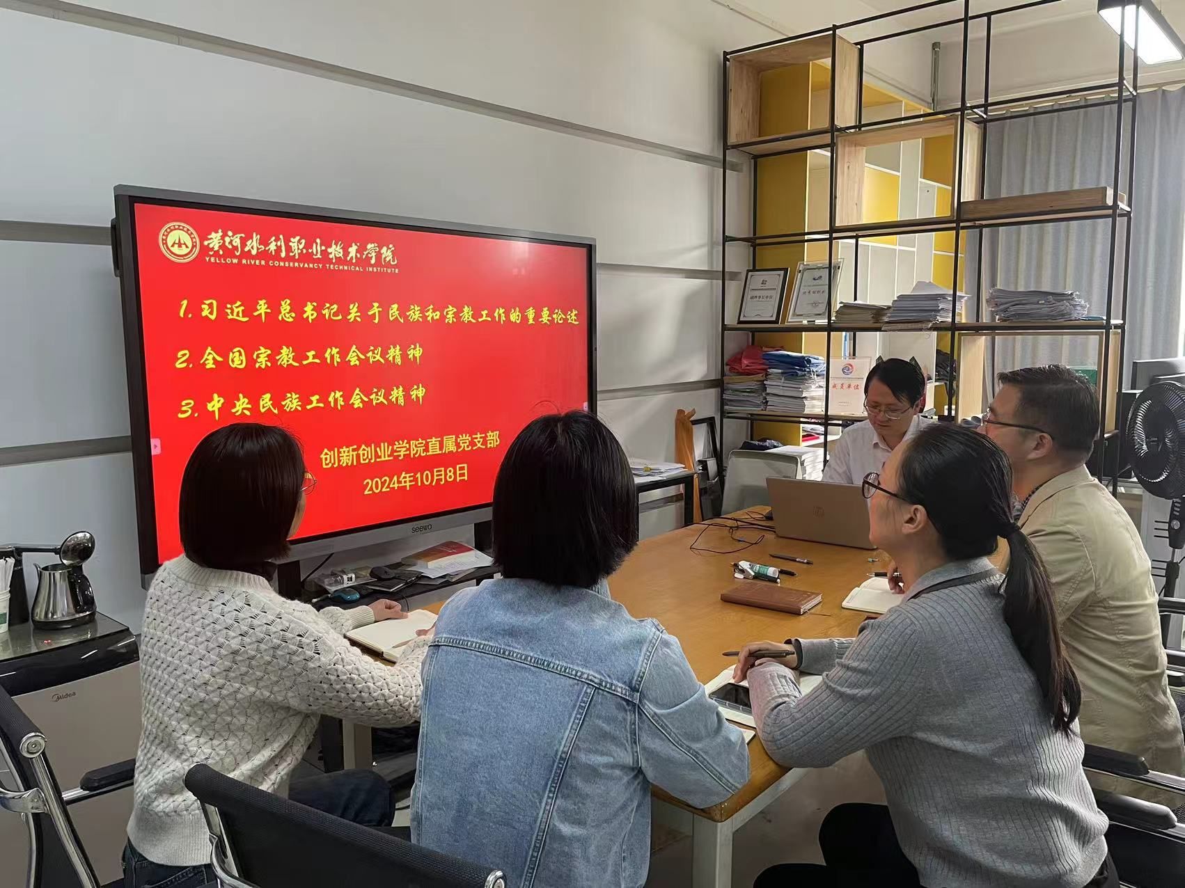 10月8日下午,创新创业学院直属党支部在SY3410办公室开展政治理论学习,会议由直属党支部书记薛冰主持,支部全体成员参加。