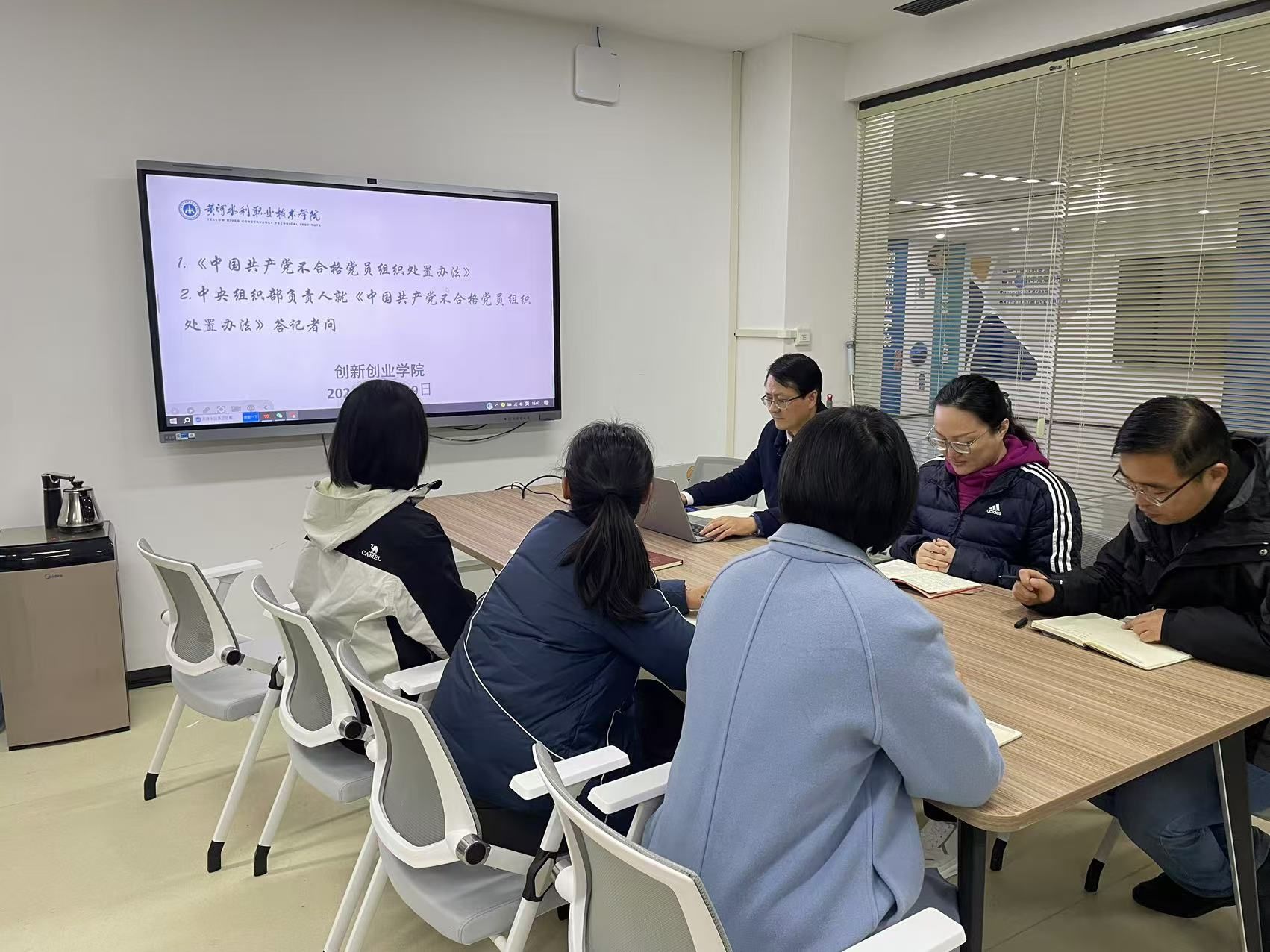 11月19日下午,创新创业学院在SY7201开展政治理论学习,学习由创新创业学院院长薛冰主持,部门全体成员参加。