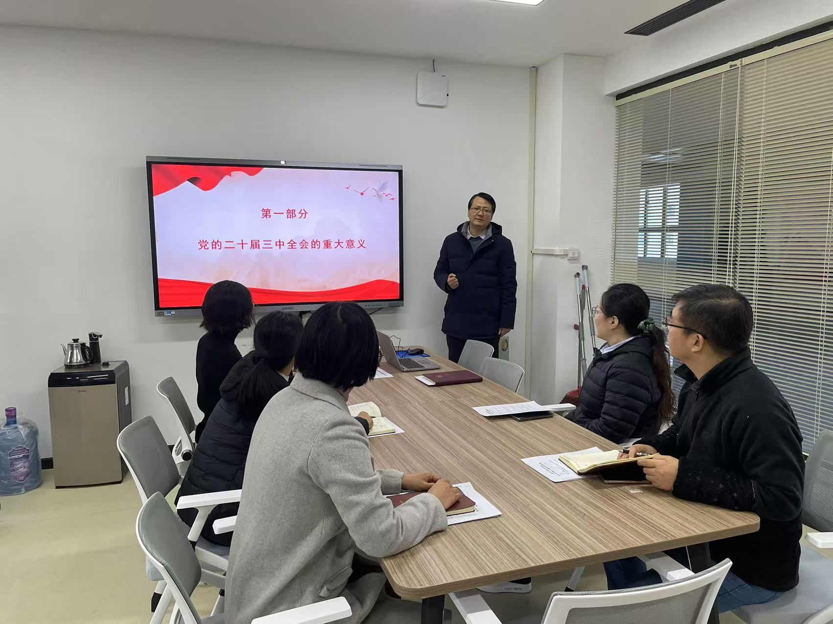 11月28日上午,创新创业学院直属党支部在SY7201开展党的二十届三中全会精神解读专题党课学习,学习由直属党支部书记薛冰主持,支部全体成员参加。
