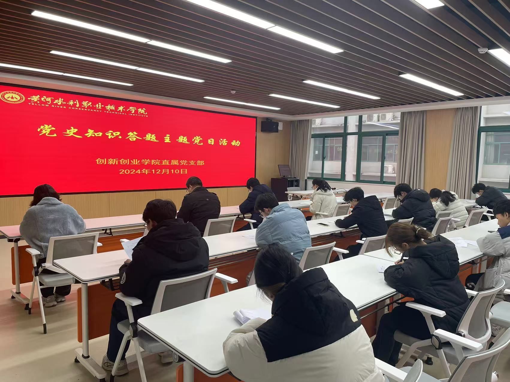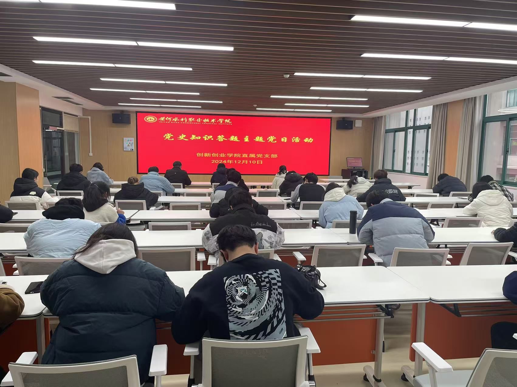 为贯彻落实党史学习教育,营造学党史、知党情、跟党走的浓厚氛围,12月10日下午,创新创业学院直属党支部在SY7302开展党史知识答题主题党日活动,创新创新学院直属党支部成员及部分创新创业部学生参加活动。