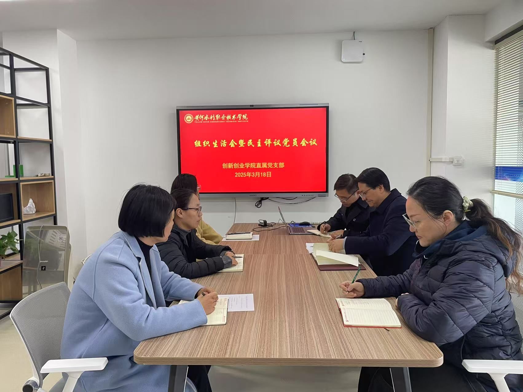 3月18日下午,创新创业学院直属党支部在SY7201召开组织生活会暨民主评议党员会议,会议由创新创业学院直属党支部书记薛冰主持,支部全体成员参加。