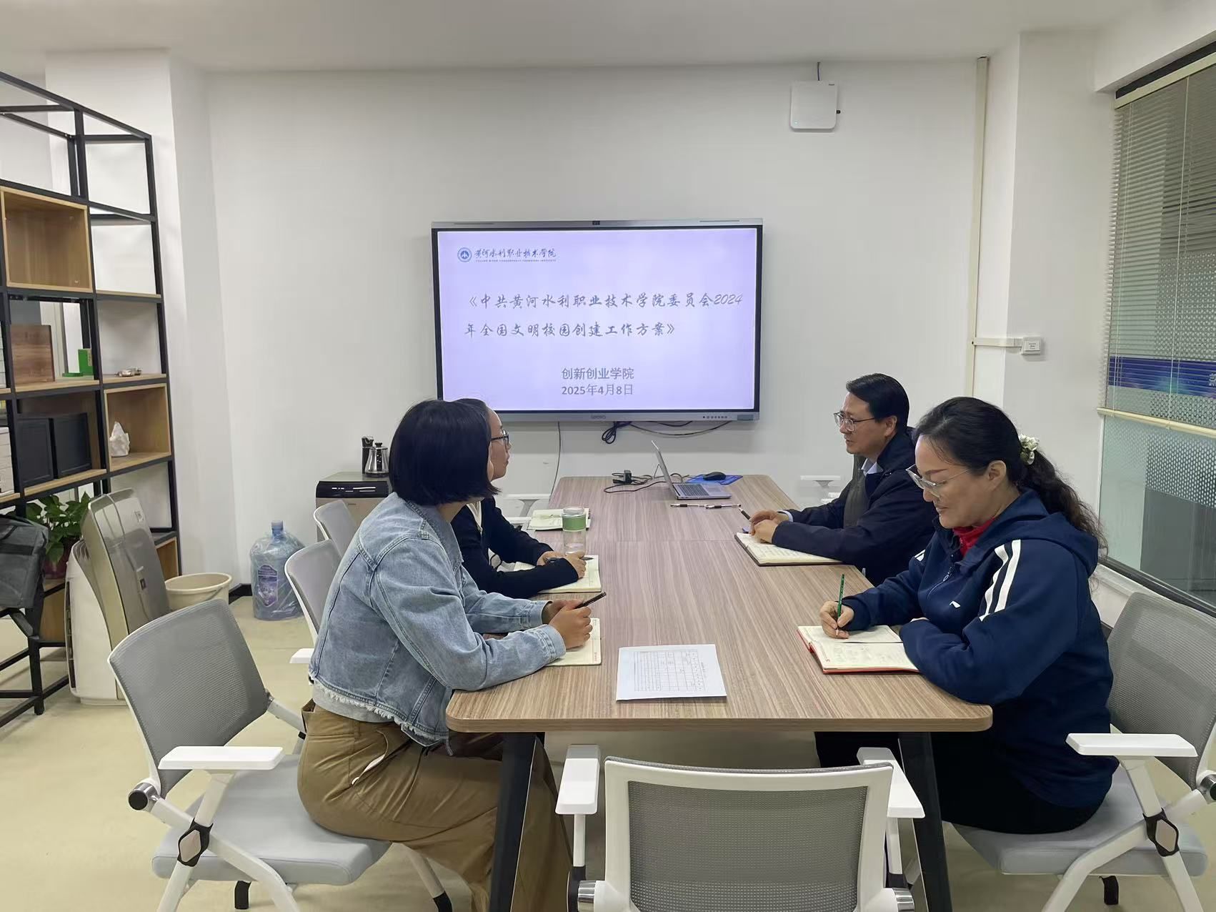 4月8日下午,创新创业学院直属党支部在SY7201召开会议,学习《中共黄河水利职业技术学院委员会2024年全国文明校园创建工作方案》。会议由创新创业学院院长薛冰主持,部门全体成员参加。