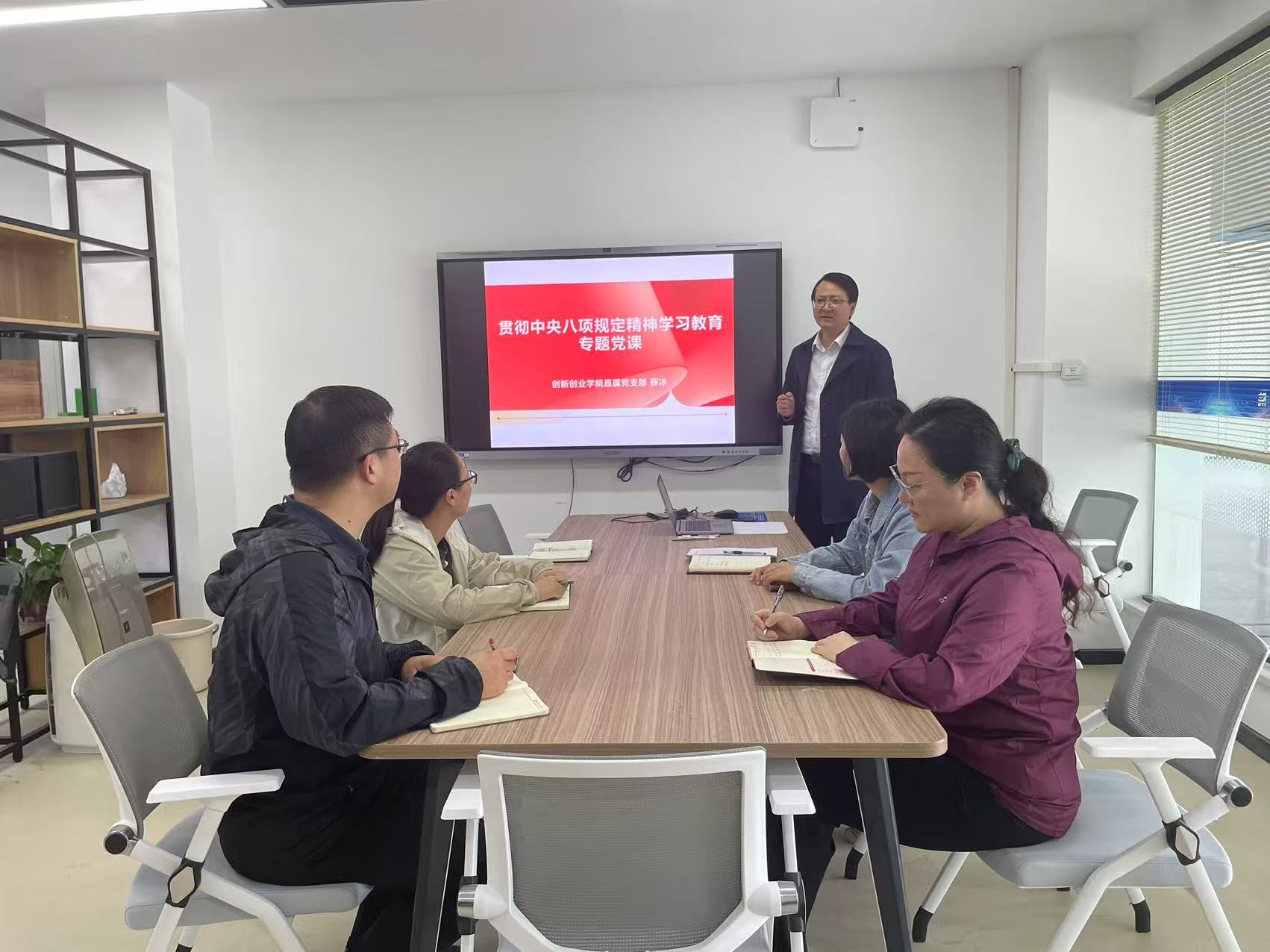为贯彻落实党的二十届三中全会部署,锲而不舍落实中央八项规定精神,推进作风建设常态化长效化,根据创新创业学院工作实际,4月22日下午,创新创业学院直属党支部书记薛冰在SY7201讲授贯彻中央八项规定精神学习教育专题党课,支部全体成员参加。