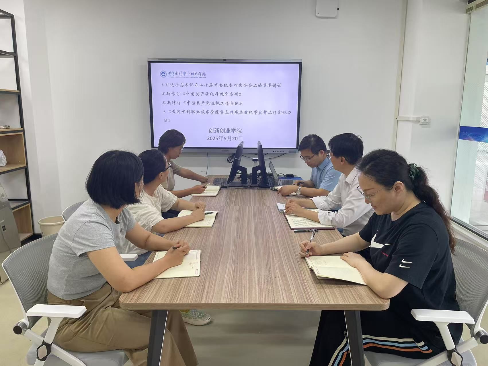 5月20日下午,创新创业学院在SY7201开展政治理论学习,学习由创新创业学院院长薛冰主持,部门全体成员参加。