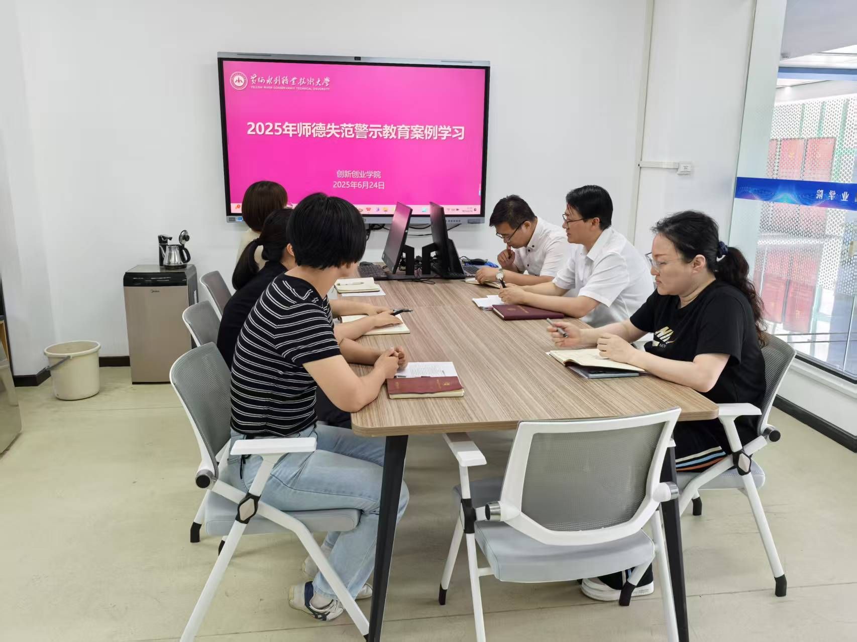 为进一步加强师德师风建设,规范教师职业行为,筑牢师德底线,6月24日下午,创新创业学院在SY7201开展师德失范警示教育,活动由创新创业学院院长薛冰主持,部门全体成员参加。
