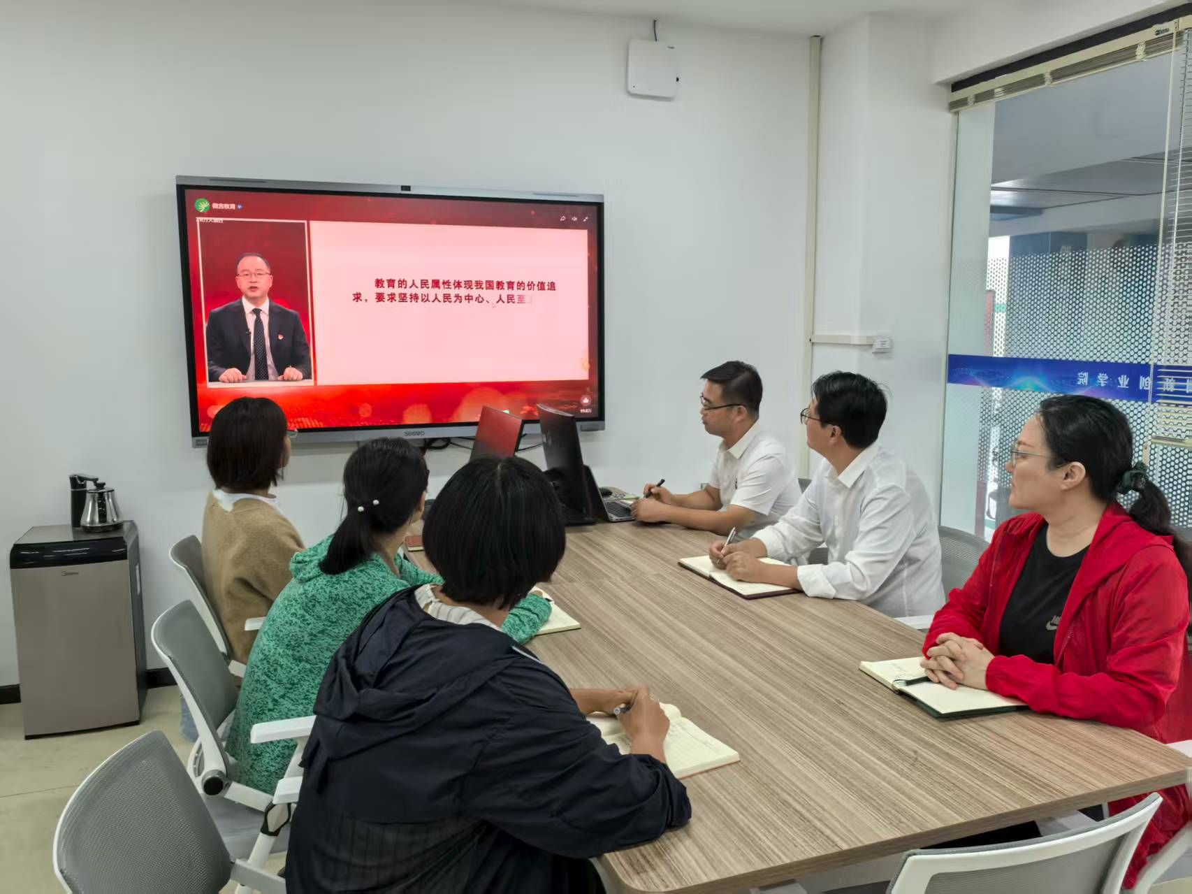 9月12日下午,创新创业学院直属党支部在SY7201组织观看高校党组织示范微党课《深刻把握教育三大属性,谱写教育强国时代新篇》,支部全体成员参加。