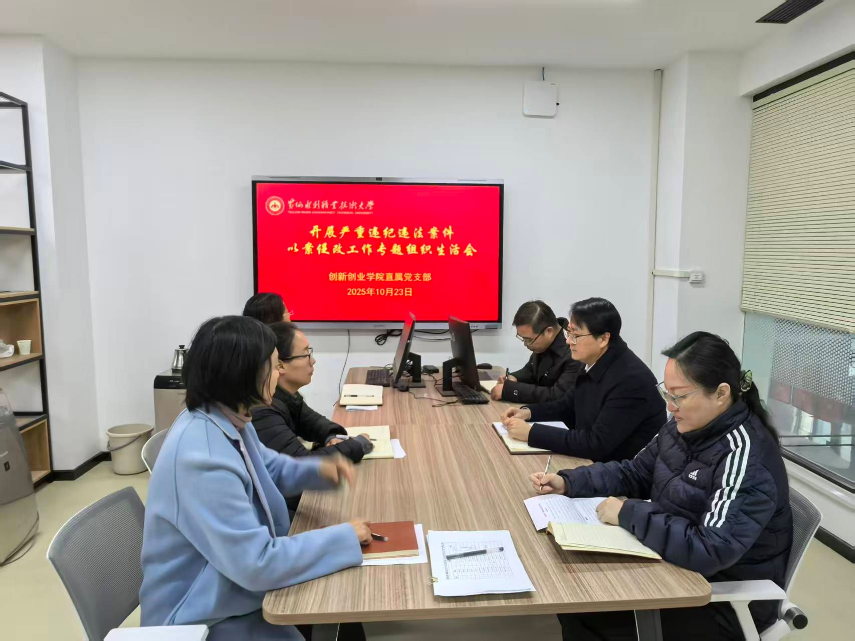 10月23日上午,创新创业学院直属党支部在SY7201召开严重违法违纪案件以案促改专题组织生活会,会议由创新创业学院直属党支部书记薛冰主持,支部全体成员参加。