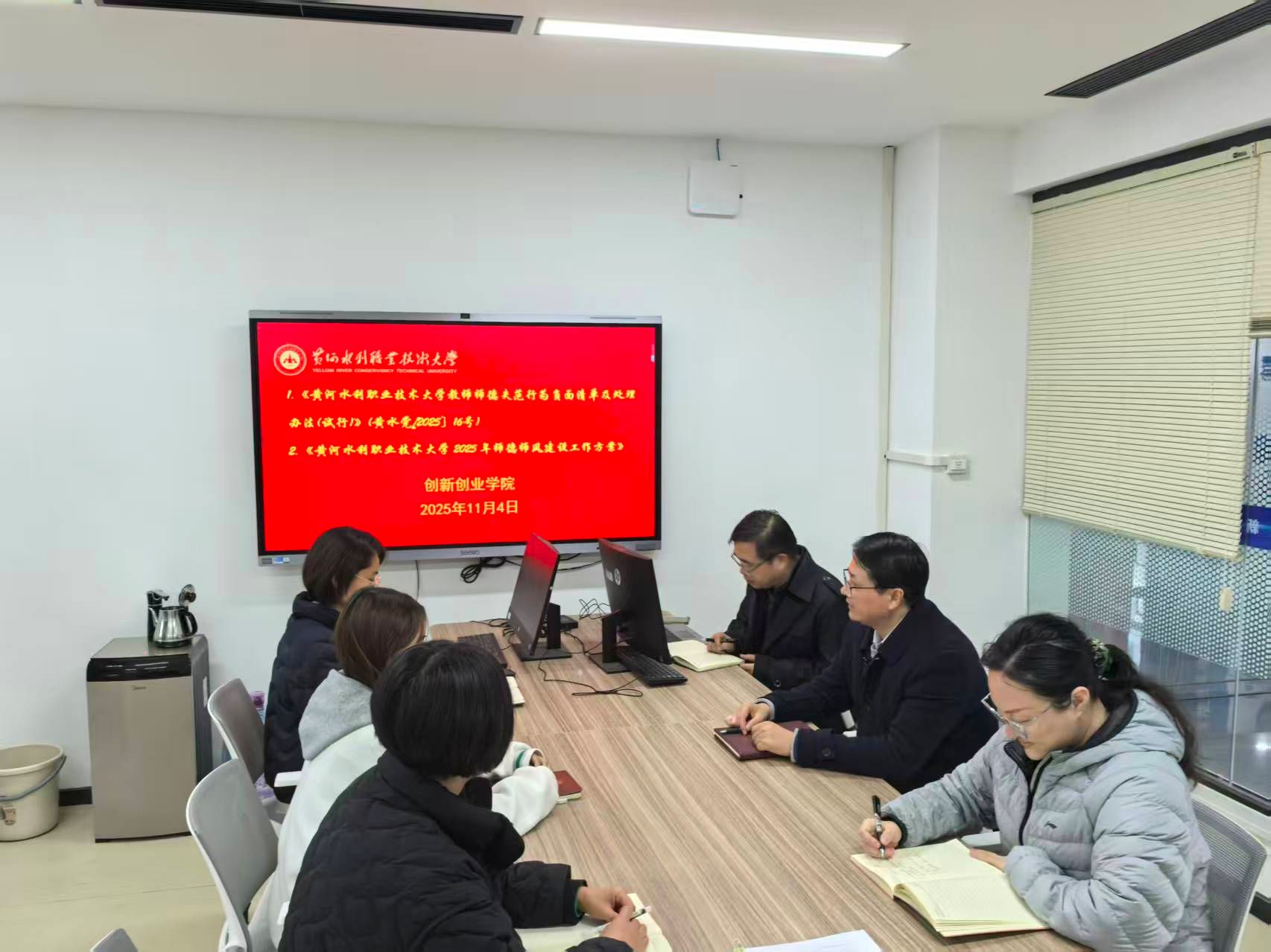 11月4日下午,创新创业学院在SY7201开展师德师风建设专题学习,学习由创新创业学院院长薛冰主持,部门全体成员参加。