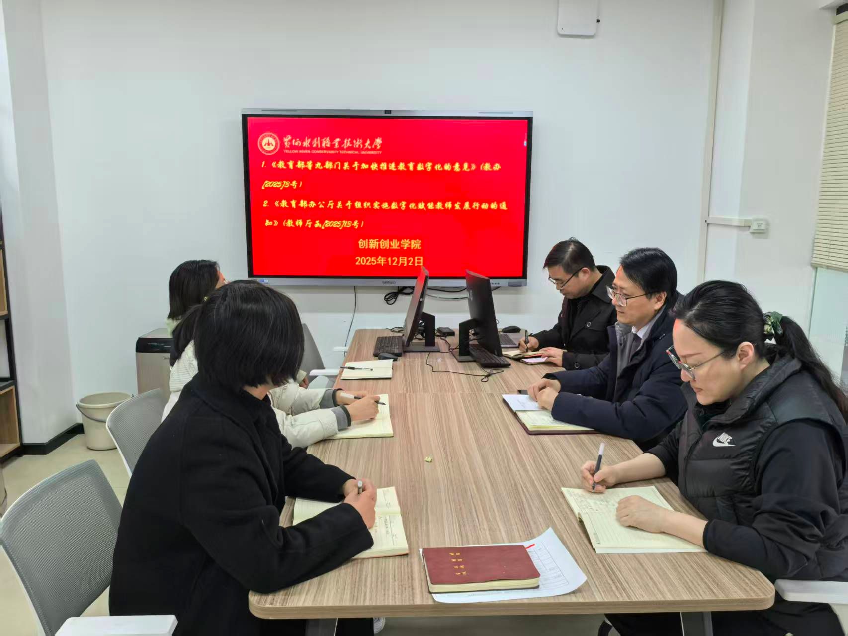 12月2日下午,创新创业学院在SY7201开展政治理论学习,学习由创新创业学院院长薛冰主持,部门全体成员参加。