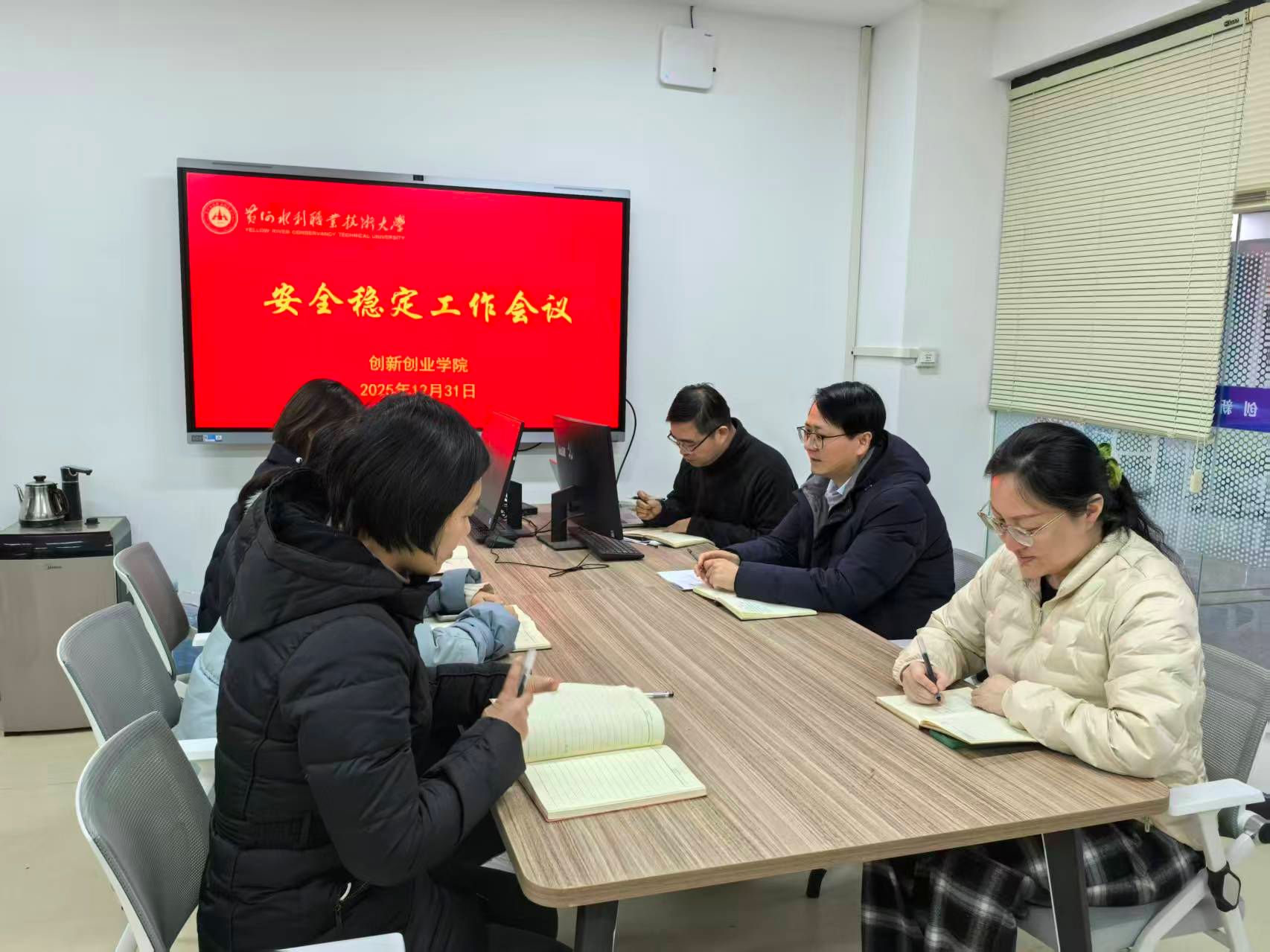 12月31日下午,创新创业学院在SY7201召开安全稳定工作会议,会议由创新创业学院院长薛冰主持,部门全体成员参加。