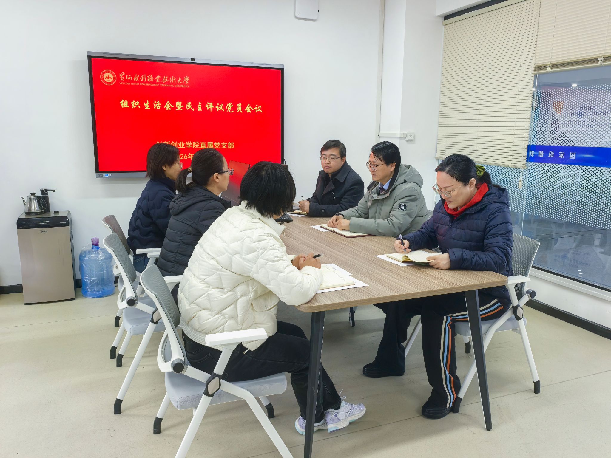 3月19日上午,创新创业学院直属党支部在SY7201召开组织生活会暨民主评议党员会议,会议由创新创业学院直属党支部书记薛冰主持,党支部全体成员参加。