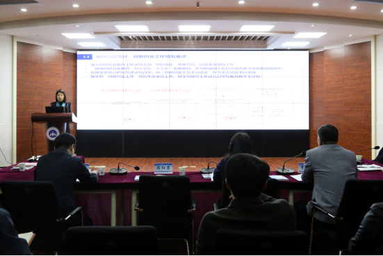 焦爱萍对我校创新创业工作开展情况进行了专题汇报,从加强顶层设计,优化体制机制;深化教育改革,构建特色创新创业教育体系;整合校内资源,优化创新创业平台建设;强化多元服务举措,完善创新创业服务体系等方面介绍了我校创新创业工作的具体做法,并从构建“1+1+X”双螺旋创新创业教育模式、基于大数据分析的双创工作“画像”、“三联”双创实践平台共建模式等三个方面展示了我校创新创业工做的特色及成效。