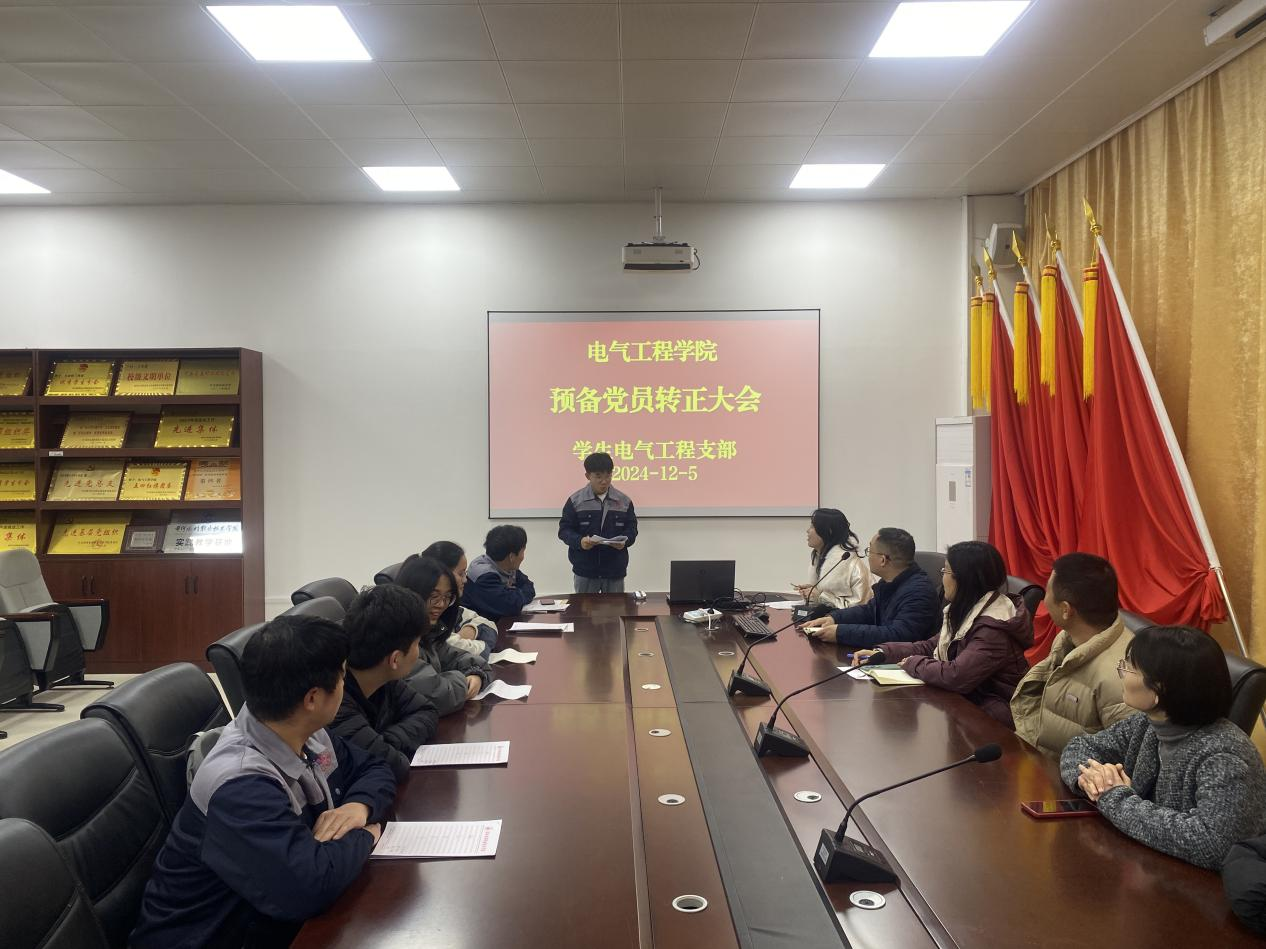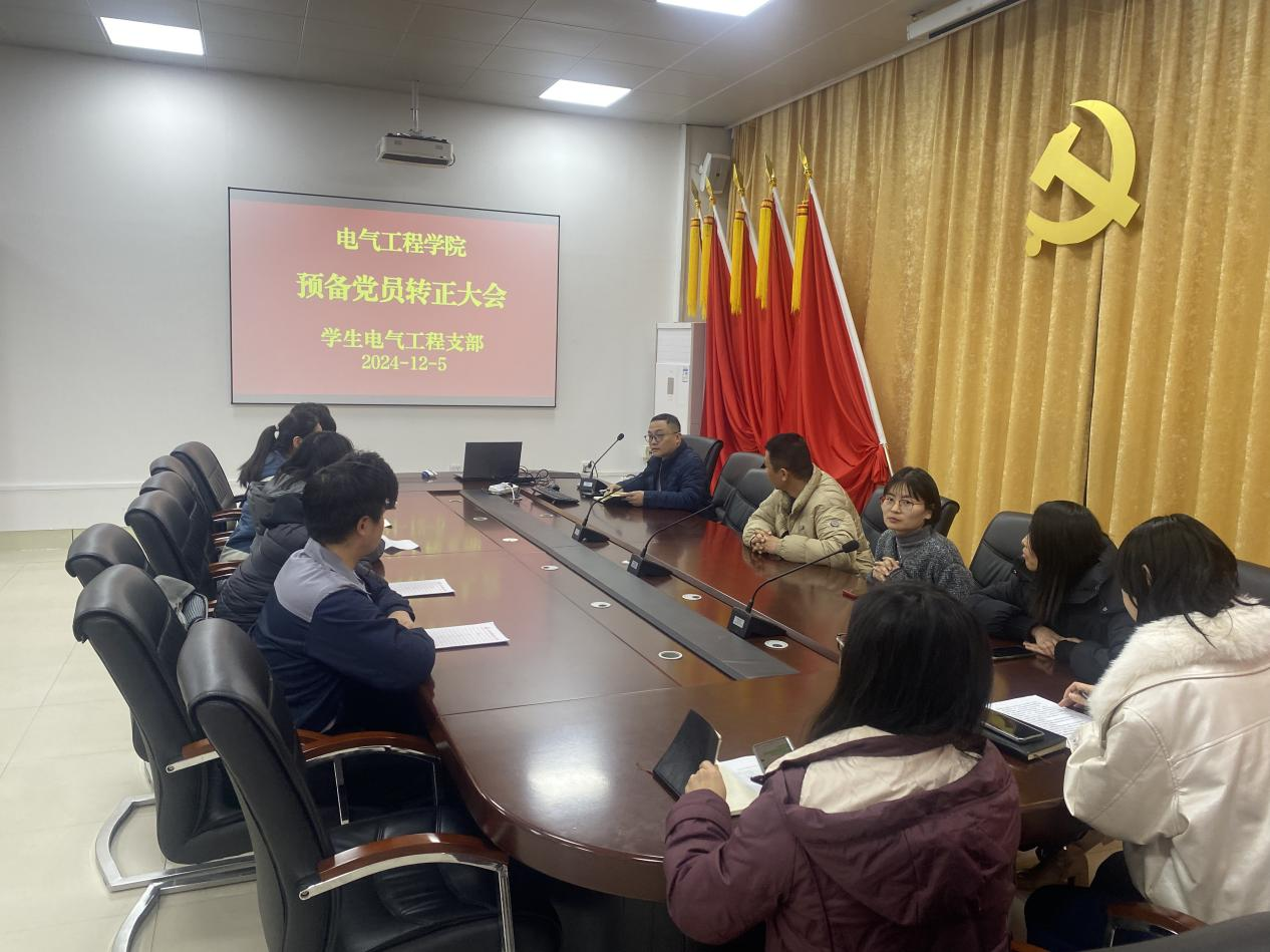 2024年12月5日,在庄严的国歌声中,我院学生电气工程支部预备党员转正大会顺利举行。本次大会旨在审议并表决一批预备党员的正式转正事宜,进一步壮大党员队伍,强化党组织在青年学生中的引领作用,为我院创新发展和人才培养注入新鲜血液和强劲动力。