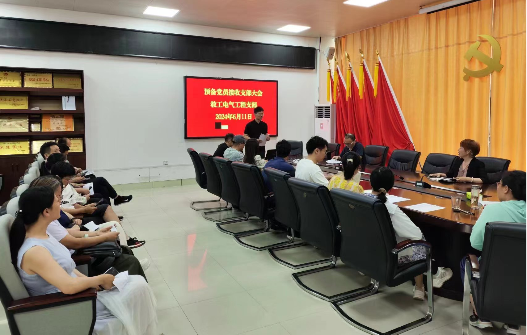 为深入学习贯彻党的二十大精神,进一步加强党员队伍建设,落实党支部发展党员工作计划,2024年6月11日下午,教工电气工程支部在SY4302召开预备党员接受支部大会,讨论张培航同志的党员发展事项。支部全体党员参加了大会,会议由支部书记葛芸萍主持。