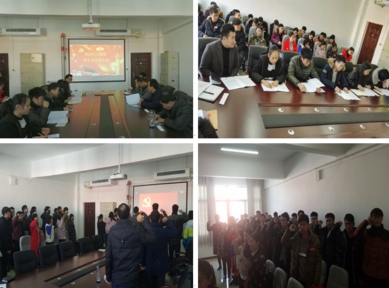 2017年12月8日在实自动化工程系召开党支部大会,研究张耀辉等11名发展对象的入党申请,本次会议出席的老师有党总书记胡建、党总支副书记管欣、分团委书记赵鹏、党支部书记王留老师、16级辅导员刘云潺和陈刚老师,全体学生党员。