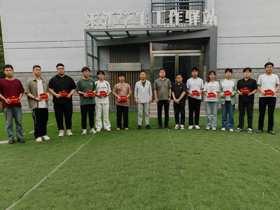 2025年5月14日,求新驿站党支部在11号宿舍楼举行党员先锋岗挂牌仪式。学院党总支书记张延、副书记赵鹏及支部师生党员共同参与了此次活动。