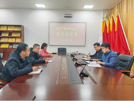 为深入学习贯彻习近平新时代中国特色社会主义思想,巩固深化党纪学习教育成果,综合发挥党的纪律教育约束、保障激励作用,为进一步全面深化改革、推进中国式现代化提供坚强纪律保证。按照上级党组织要求,我院党总支于2025年2月18日在学院会议室4302B召开2024年度领导班子民主生活会。院党总支书记张延,院党总支副书记赵鹏,院长王磊,副院长沈艳河,副院长刘金浦等参加了会议。会议由院党总支书记张延主持。