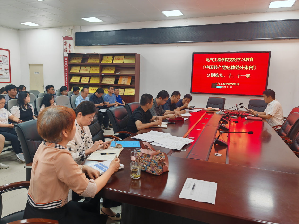 6月11日,电气工程学院党总支组织专题学习《中国共产党纪律处分条例》和党员条例知识竞赛,会议由党总支书记张延主持。