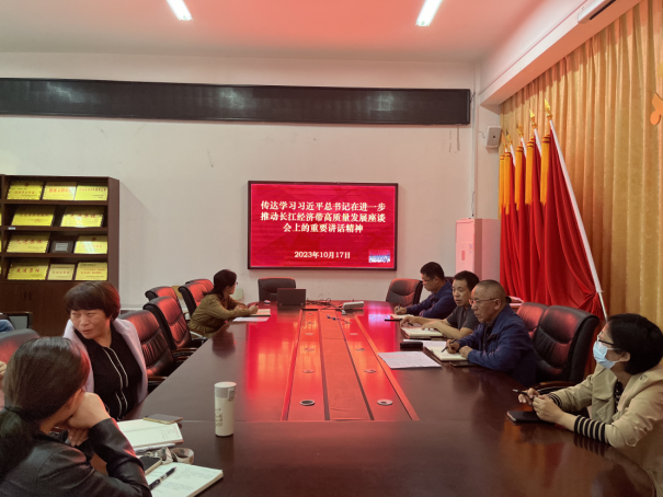 会议指出,习近平总书记在进一步推动长江经济带高质量发展座谈会上的重要讲话,充分体现了以习近平同志为核心的党中央矢志不移坚持新发展理念、坚持生态优先、绿色发展,以科技创新为引领,统筹推进生态环境保护和经济社会发展的坚定决心和战略定力。全体党员干部要切实把思想和行动统一到习近平总书记关于长江经济带发展战略、黄河流域生态保护和高质量发展战略的重要要求和战略部署上来,从长江经济带发展发生的“五个重大变化”中深刻领悟“两个确立”的决定性意义,增强“四个意识”、坚定“四个自信”、做到“两个维护”,牢记“国之大者”,进一步增强学校的学习氛围、科技攻关氛围,为服务国家经济社会发展战略做出更大的贡献。
