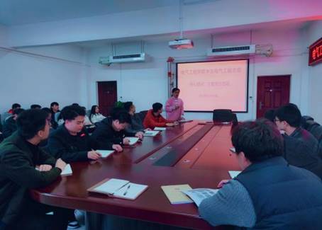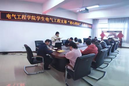 2019年11月19日电气工程学院党总支学生电气工程支部在实训楼5521召开主题党日活动会议,参加本次会议的人员有电气工程学院党总支副书记管欣老师和电气工程学院党总支学生电气工程支部副书记李景丽老师及在校党员同志和发展对象。会议主要是关于党员“初心四问”问题。
