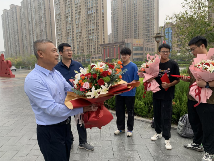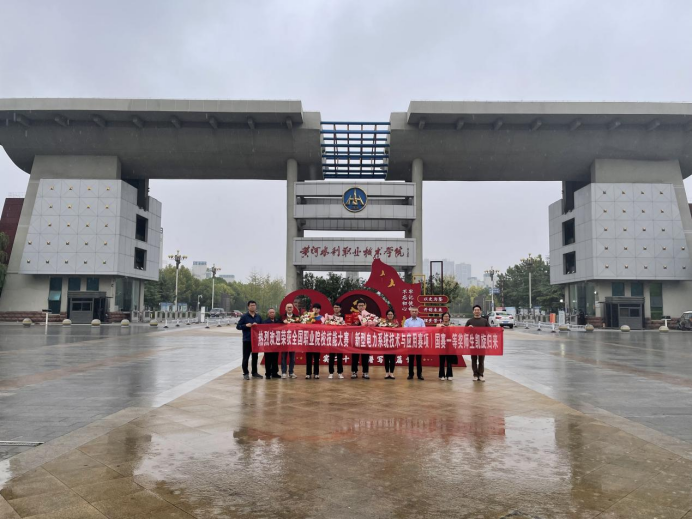 9月26日下午,蒙蒙秋雨轻轻洒落校园,一条“热烈欢迎荣获全国职业院校技能大赛(新型电力系统技术与应用赛项)国赛一等奖师生凯旋归来”的红色条幅格外醒目。刘玉宾副校长率领电气工程学院院长杜广朝、副书记郝迪婧、副院长王磊特意手捧鲜花,在黄河水利职业技术学院南大门迎接国赛队师生荣耀凯旋,第一时间为队员们送上祝贺。