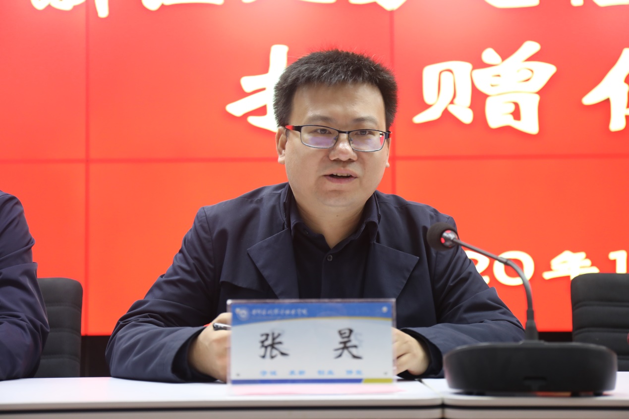 张昊回顾了公司与学校的合作过程,介绍了开展现代学徒制试点、促进校企共同发展的经验。他表示,黄河水院为通信行业培养了大批优秀人才,学生遍布各大运营商,在各个移动通信岗位发挥着重要作用。此次公司秉承服务社会和行业发展的理念,捐赠一批教学设备,希望这份绵薄之力能促进学校发展,培养更多通信行业高层次人才。