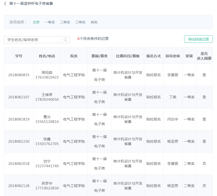 获奖名单