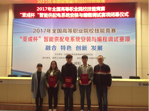 在2017年10月,参加了全国电力职业教学指导委员会委首次举办的“智能供配电系统安装与编程调试”项目的技能竞赛,虽然缺乏竞赛专用设备,有些单项内容目前还没有接触到,但学生们凭着平时在校工厂的锻炼和积累,沉着冷静,细心操作,取得了三等奖的良好成绩。