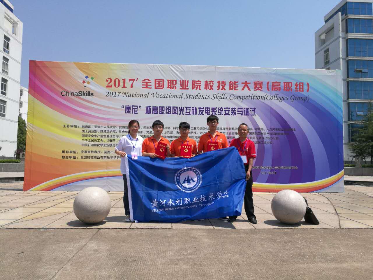 据悉,该赛项与2017年5月25-28日在安徽芜湖安徽机电职业技术学院举行。我校选手虽然首次参加该赛项的国赛,但在比赛中,凭着过硬的实力,沉着应战,经过4个小时的奋力拼搏,在全国71个代表队异常激烈的竞争中,荣获“风光互补发电系统安装与调试”(高职组)赛项三等奖,这是河南省高职院校历年来在该赛项取得的最好成绩。