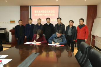 3月21日上午9时,黄河水利职业技术学院与河南龙翔电气股份有限公司合作共建“龙翔电气学院”签约暨揭牌仪式在行政楼二楼会议室隆重举行。出席此次签约仪式的有河南龙翔电气股份有限公司总经理杨红卫、副总经理张新德、电力研究院院长朱西波、副院长武德起;学校党委副书记王卫东、副校长焦爱萍、副校长刘玉宾、自动化工程系的领导及相关专业教师等。签约仪式由副校长刘玉宾主持。