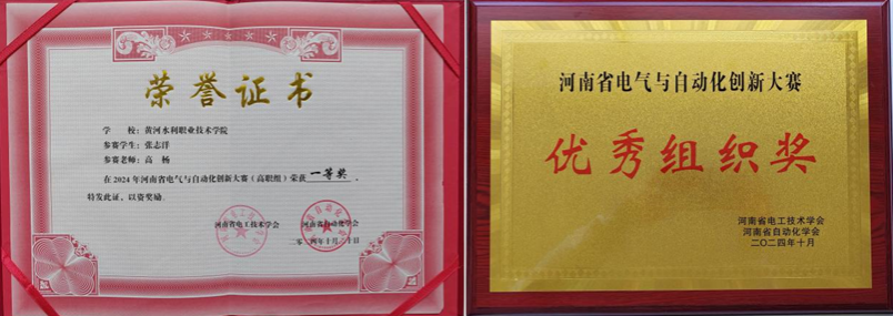 10月19日-20日,2024年河南省电气与自动化创新大赛在河南三门峡举行。本赛项为双人团队赛,共有来自全省24所院校共27支队伍近百名师生参加了比赛。由电气工程学院教师高杨、学生张志洋组成的参赛队奋勇拼搏,以第1名的成绩获得高职组一等奖,学校获“优秀组织奖”。