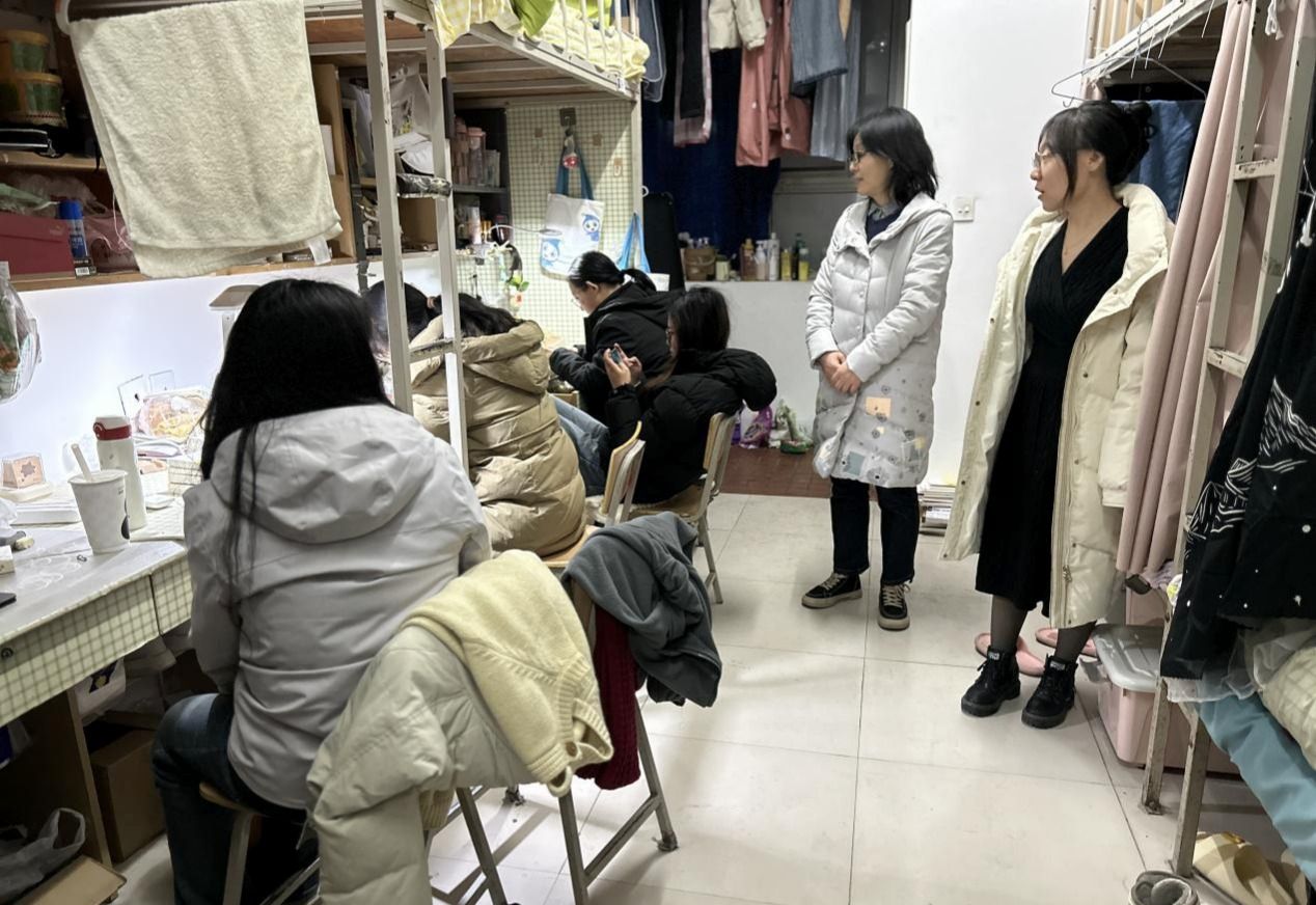 走访期间,学院领导与辅导员深入宿舍“拉家常、听心声、查隐患”,详细了解学生的开学准备情况,耐心倾听学生的意见建议,嘱咐学生严格遵守宿舍安全管理规定、谨防各类诈骗、认真清理宿舍环境卫生,以良好的精神风貌迎接新学期的到来。在用电安全方面,仔细查看了宿舍内的插座、电线等设施,重点排查是否存在违规电器、私拉乱接电线等安全隐患;在卫生方面,重点关注宿舍整体环境卫生,提醒同学们要保持宿舍整洁,及时清理垃圾,营造舒适宜居的生活环境;在消防安全方面,对宿舍楼的烟感报警器等消防设施保护提出了明确要求,同时提醒辅导员加强学生消防安全知识宣传。针对排查过程中发现的问题,学工队伍现场进行了详细记录,并督促相关学生及时整改,确保安全隐患消除在萌芽状态。