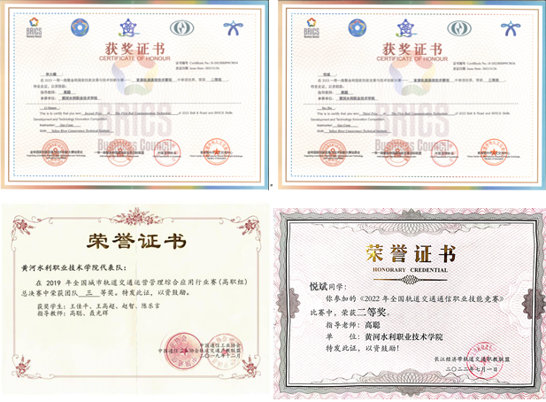 学生参加各类专业技能大赛获奖证书