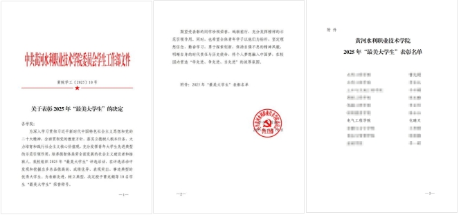 近日,我校2025年“最美大学生”评选活动圆满落幕。我院电子信息工程技术专业2023级学生化晴天凭借优异的综合表现,从众多候选人中脱颖而出,荣获“最美大学生”荣誉称号。