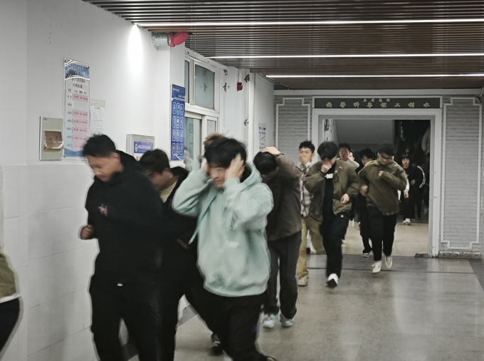 本次演练模拟了宿舍楼夜间发生火灾的紧急情况,随着模拟火警警报的响起,学生们迅速响应,按照预定的疏散路线和逃生方法,在老师的引导下有序撤离至安全区域。整个演练过程紧张而有序,学生们展现出了良好的纪律性和团队协作精神。