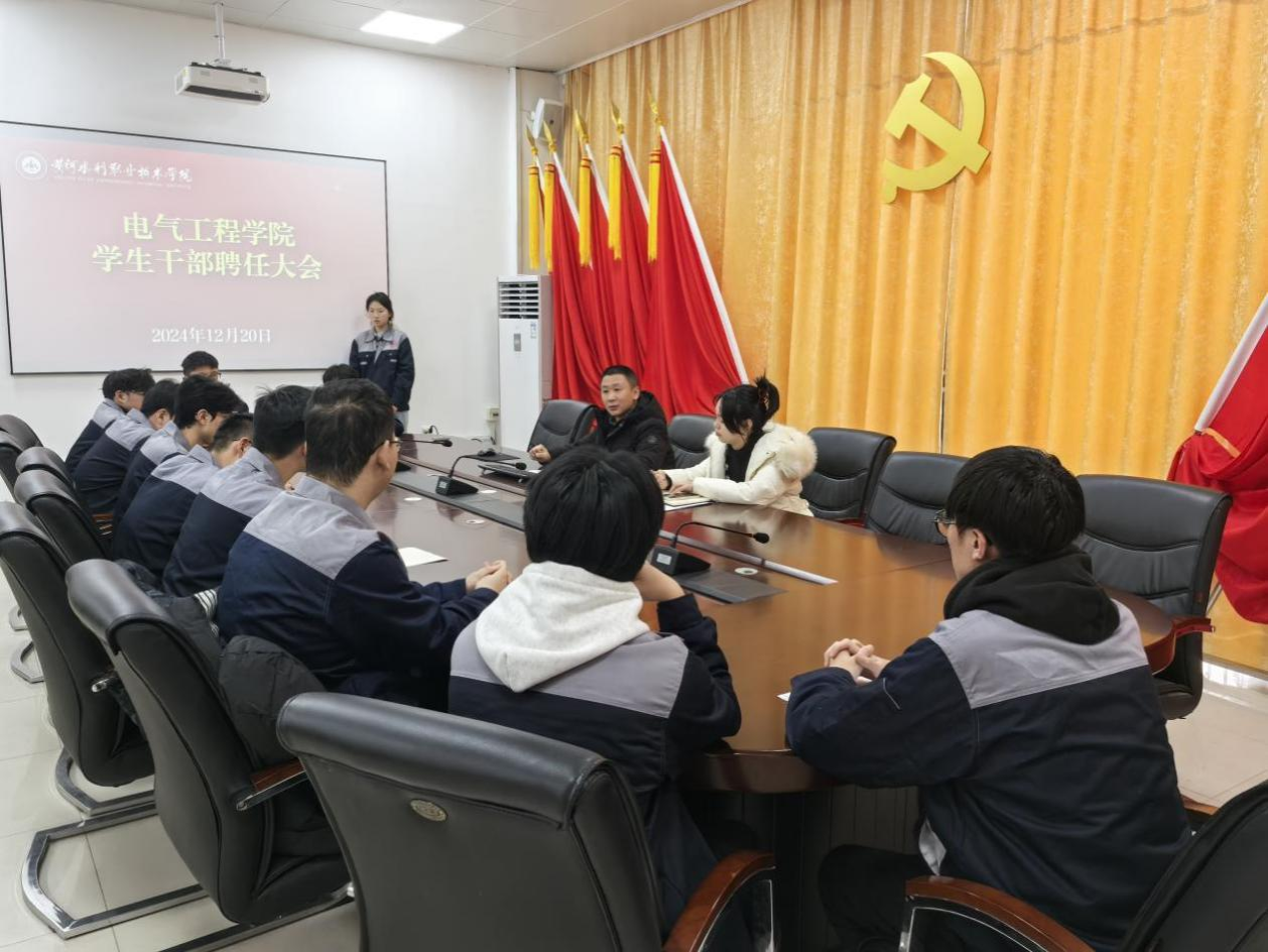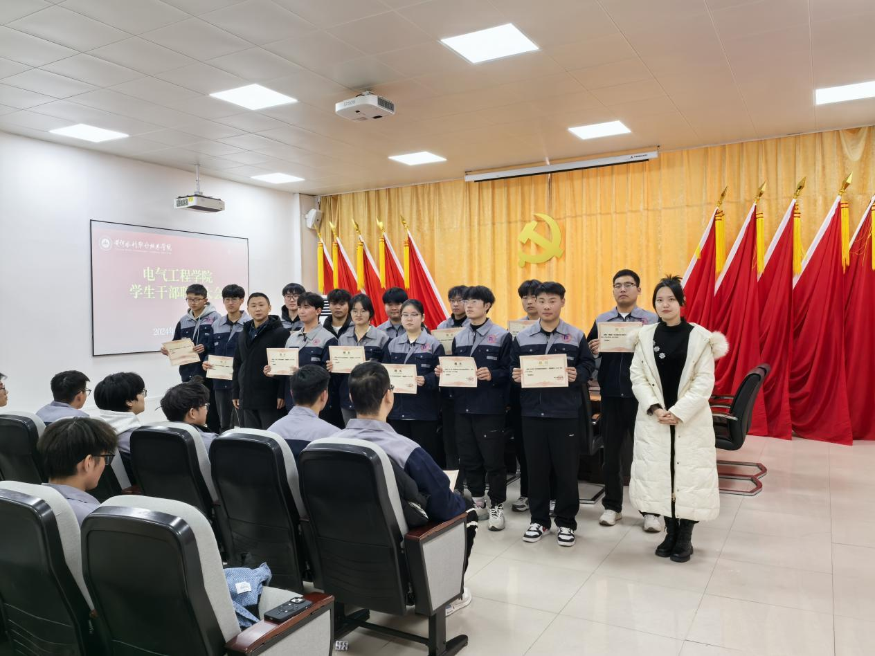 2024年12月20日,电气工程学院新一届学生干部聘任大会在学院会议室SY4302B顺利召开。院党总支副书记赵鹏、分团委负责人张栗晶出席大会,学生干部代表参会。