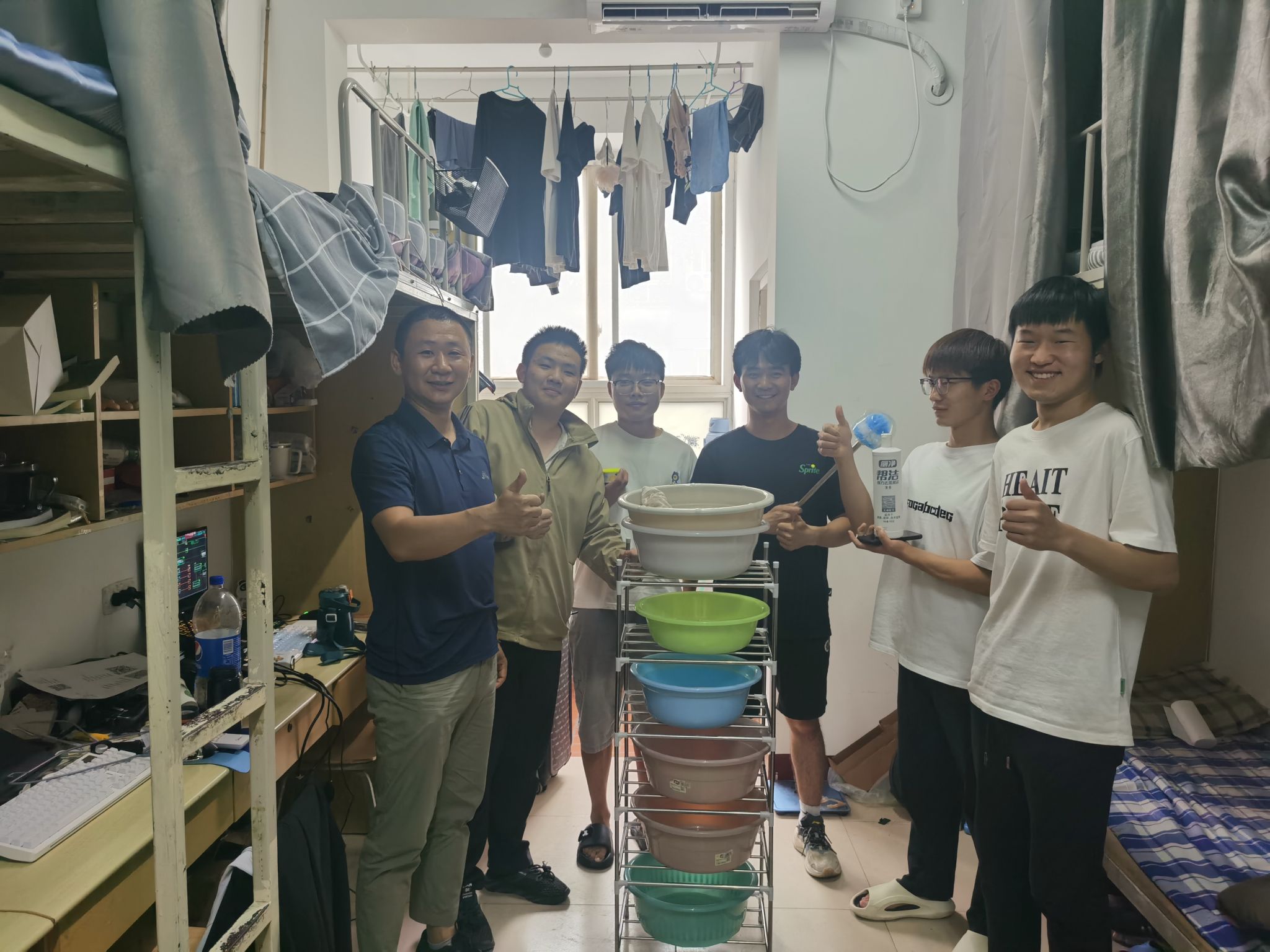 学院高度重视,精心组织,针对宿舍物品杂乱、便池顽渍、空气异味等突出问题开展攻坚,集中采购发放了脸盆架、洁厕剂、厕刷和空气清新剂等一批宿舍卫生清洁用品,号召和组织全体同学积极有序参与到宿舍环境卫生创建中来。