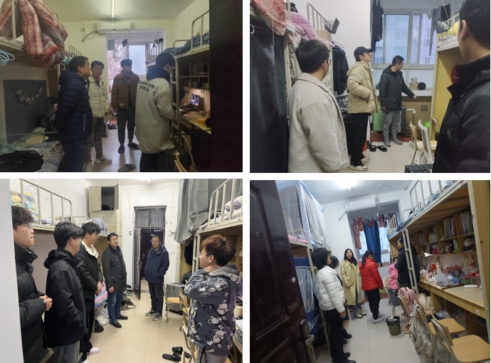 学院领导亲切询问学生假期体验以及返校感受,了解学生思想动态,倾听学生需求,解决学生问题,嘱咐学生注意用电安全,认真清理宿舍环境卫生和个人卫生,严格遵守宿舍管理规定,营造良好的学习和生活环境,以饱满的热情开启新学期生活。