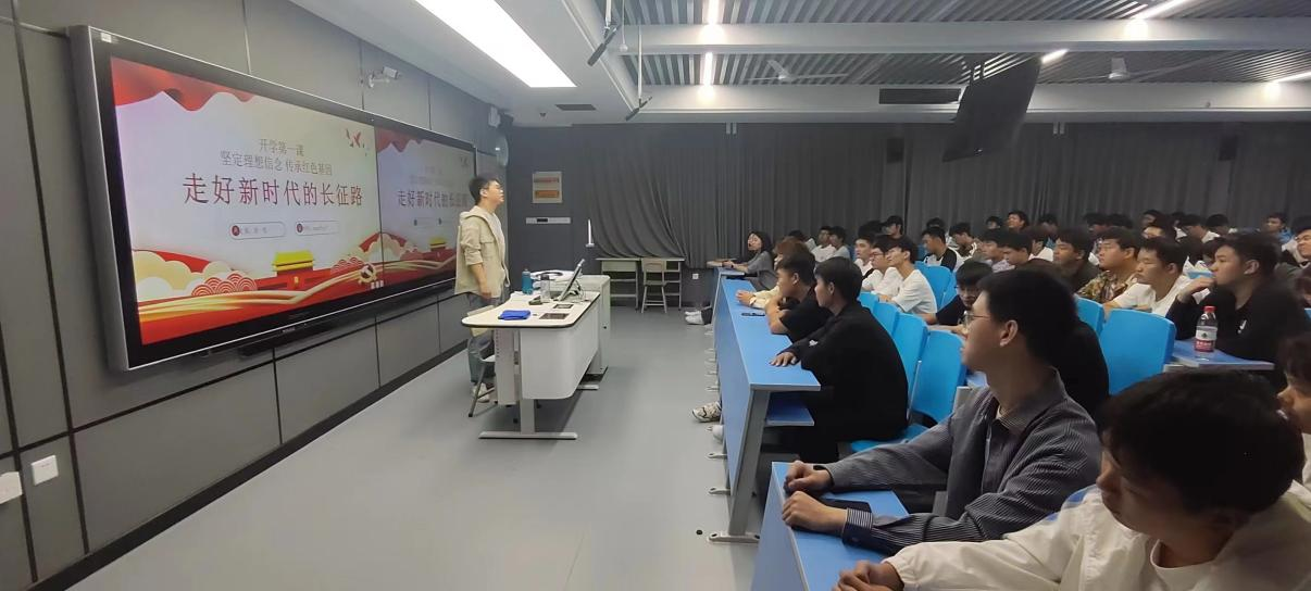 9月1日,分团委书记赵鹏围绕“新时代、新使命、新担当”的主题于4302B给学生讲授思政第一课。他深入浅出地阐述了学生干部在新学期中应扮演的角色和承担的责任。他鼓励学生干部们要以身作则,积极引领同学们共同成长。