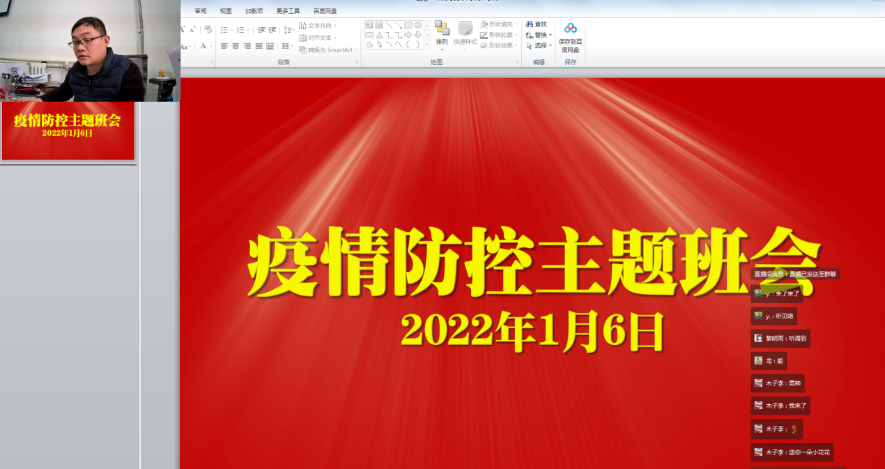 各年级辅导员第一时间召开了线上专题班会,对校院两级会议内容进行了传达,要求学生切实提高疫情防控意识,自觉遵守学校各项工作要求,以实际行动维护学校和社会疫情防控大局稳定。