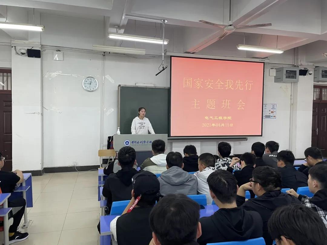 为了提高大家对国家安全的认知度和普及率,电气工程学院于2021年4月15日在JX2302开展“国家安全我先行”主题班会,参加本次班会活动的人员有2020级辅导员刘亚平老师以及2020级学生。