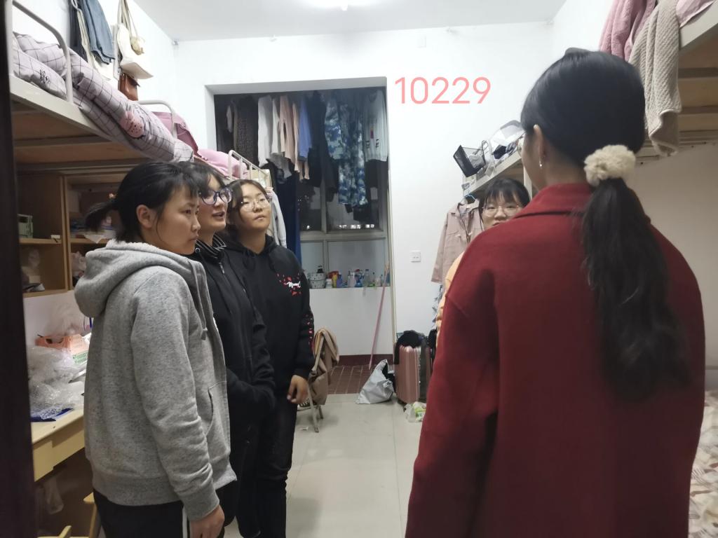 11月7日由李幸辉、张怡晨、李怡莲等10名学生党员,主动进入学生宿舍,面向学生讲述党的发展历程、党的重大决策、社会主义核心价值观等先进思想,共走访30间宿舍,宣讲学生180人。