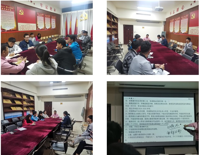 10月5日,我院在5号实验楼SY5515室举行了2019-2020学年国家奖学金差额推荐工作会议。我院副书记管欣老师、辅导员李景丽老师和高玲老师等三位老师带领我院资助部全体同学参加了本次会议。