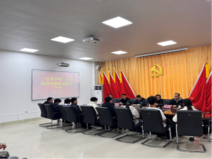 12月17日,为全面总结“百舍争鸣”活动的前期成果,进一步推动宿舍文化建设与学生自我管理能力的提升,电气工程学院在SY4302召开了2024级“百舍争鸣”活动阶段性验收总结会。学院党总支副书记赵鹏、辅导员代表以及2024级宿舍长代表参加会议。