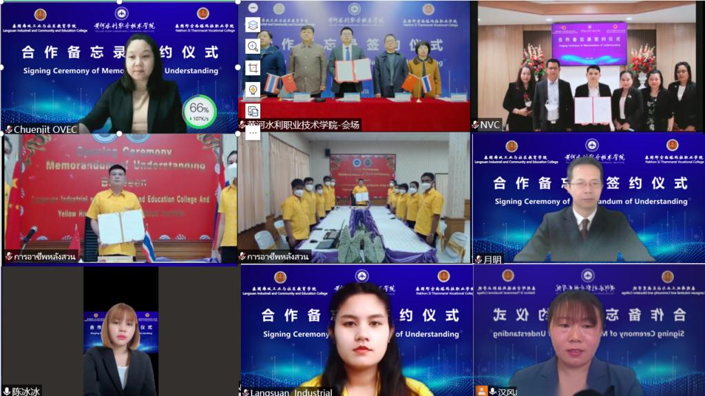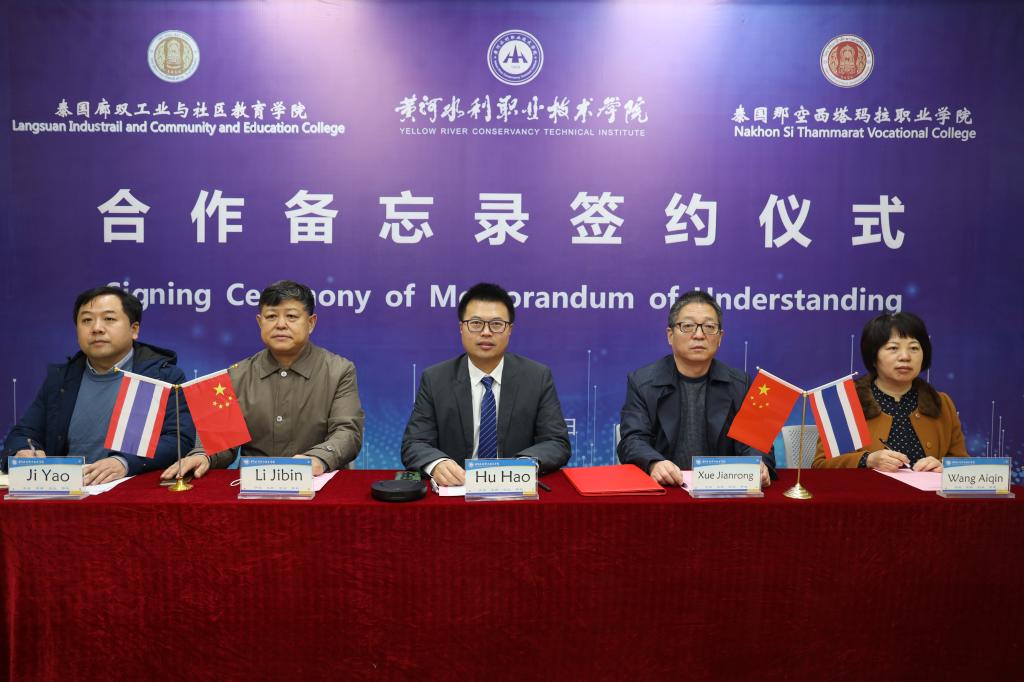 签约仪式上,校长胡昊向两所学校介绍了我校的办学情况及近年来在国际合作方面取得的成绩,表达了对与两校即将开展的国际合作项目的希望与信心,期待未来在人才培养、师生互访等领域有更加深入的合作。泰国那空西塔玛拉职业学院及廊双工业与社区教育学院的校长也分别介绍了学校的情况,并表达了对职业教育国际合作项目的期待。