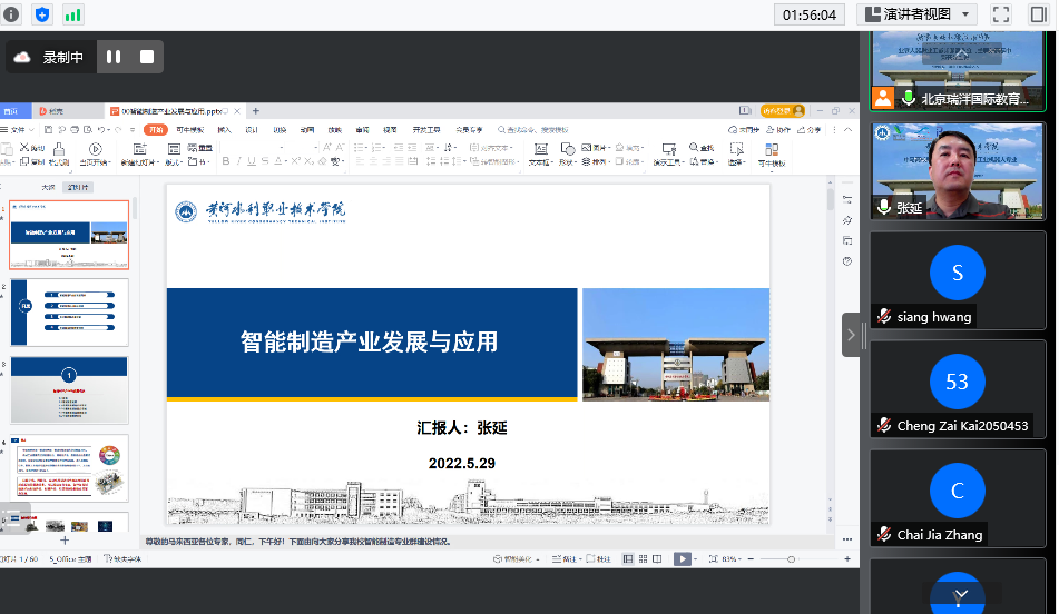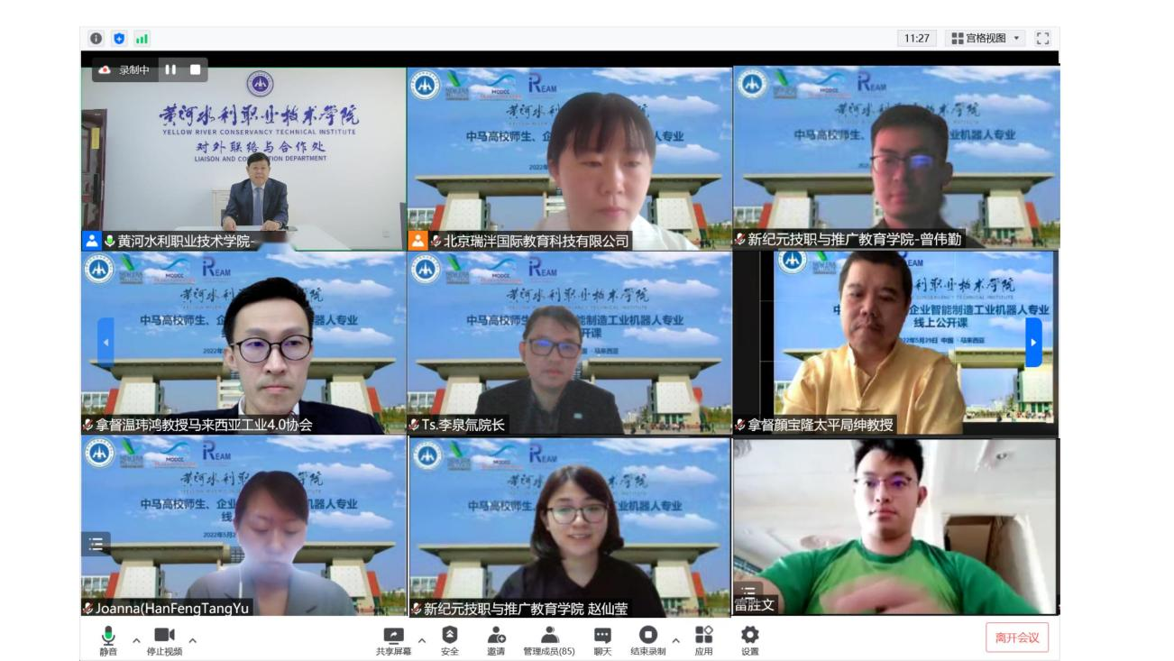 科技处副处长张延、机械工程学院教师沈艳河分别以《智能制造产业发展与应用》和《工业机器人产业发展与应用》为题,通过专题讲授、视频展示、案例讲解等方式为参训人员进行了线上授课。课后,参训人员对我两位教师的精彩授课表示了感谢,并对我校在智能制造、工业机器人领域的教学探索表示了极大的兴趣,希望进行进一步的学术交流,并希望我校能为马来西亚的行业人士提供更多的指导。
