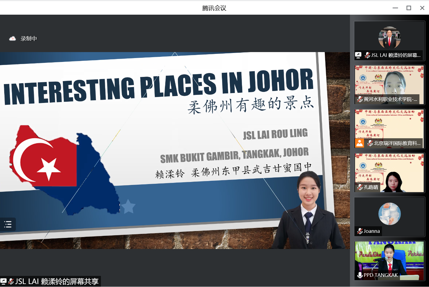 Ropiah Mohamed简要介绍了柔佛州教育国际交流的情况和马来西亚独特的多元种族文化。她表示,此次跨文化交流活动意义重大,将加深两国师生对彼此文化的了解,增进两国青年的友谊,希望未来能够深化合作,共谋交流合作新篇章。