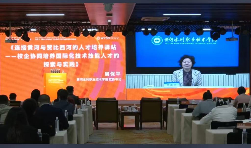 论坛上,周保平以“校企协同培养国际化技术技能人才的探索与实践”为题,与国内外职业教育专家、企业代表和媒体分享了我校创新职业教育国际合作范式、服务“一带一路”建设、培养国际化技术技能人才的做法。她说,近年来,学校通过创新机制、深化改革,形成了“专业共建、人才共育、过程共管、成果共享、责任共担”的育人理念,搭建了政行企校科多元主体的大禹学院境外办学新平台,全方位构建了“一体、多点、四融合”的国际化人才培养新模式,多链条助力中国职教“走出去”,全领域贡献国际化水利职教智慧。她表示,黄河水院将继续努力构建“政府支持,行业主导,多元参与,项目管理”的大禹学院建设模式,将其建设成为水利行业优势突出、人才培养特色鲜明、沿线国家高度认可的国际知名水利职教品牌。周保平分享的黄河水院国际化特色办学经验做法引起了与会嘉宾的强烈共鸣。