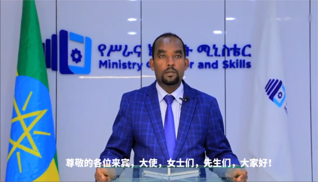 埃塞俄比亚劳动与技能部国务部长特沙莱·贝雷查·亚德萨通过视频的方式为本次启动仪式发来致辞。他谈到:近年来,埃中全面合作伙伴关系迅速发展并取得了丰硕成果,尤其是在教育和文化领域。我们今天相聚在此,也是埃中双方以往交流的延续,“中文+职业技能”项目,将为埃赛俄比亚劳动力市场培养高素质技能人才,大大提升埃塞俄比亚毕业生的就业力,为埃塞俄比亚技术职业教育培训添砖加瓦。