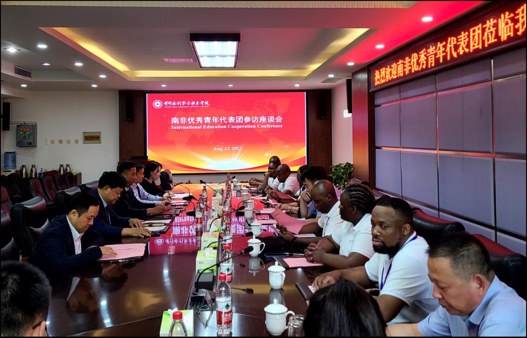 8月23日下午,由南非西北省外办副主任Bonolo Mothobi,南非共青团全国副主席、非国大青联姆普马兰加省书记Thandeka Skhosana等一行7人组成的南非优秀青年代表团,河南省委外办亚非处处长刘宝、副处长王紫,开封市人民政府外事办公室副主任王伟超来我校参访交流。我校副校长菅浩然及对外联络与合作处、国际教育学院等部门负责人热情接待了代表团一行。